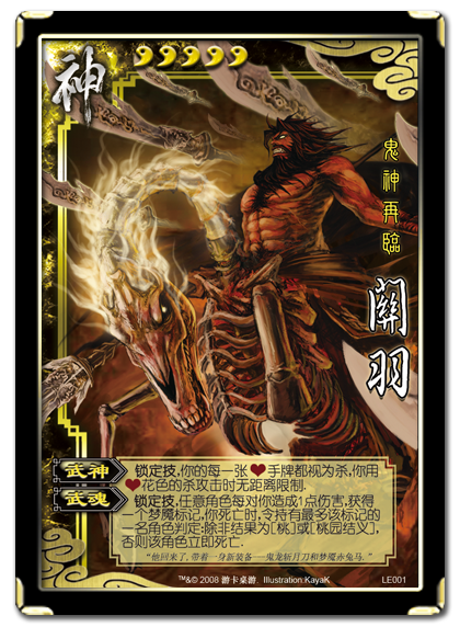 - [A]由神关羽指定其中一个角色进行【武魂】的判定。
